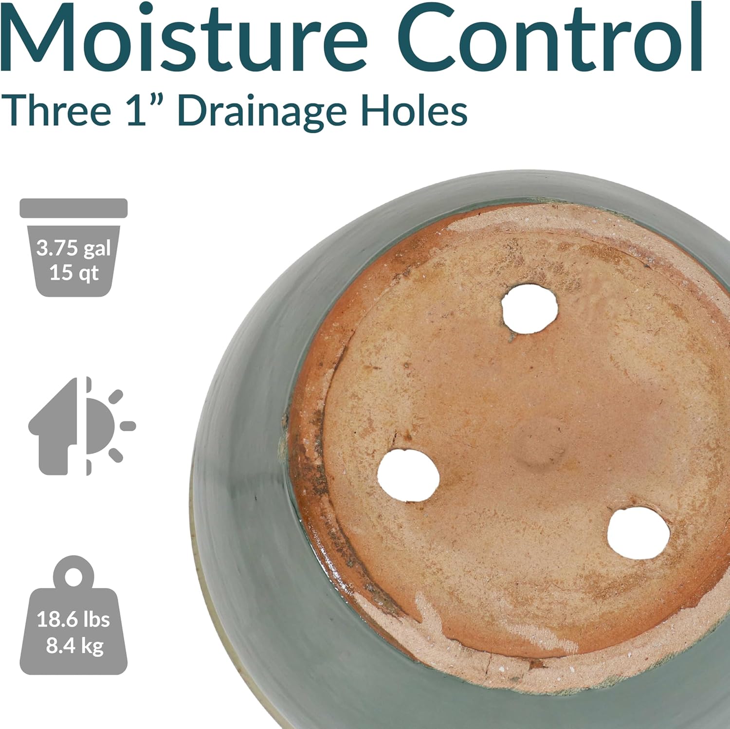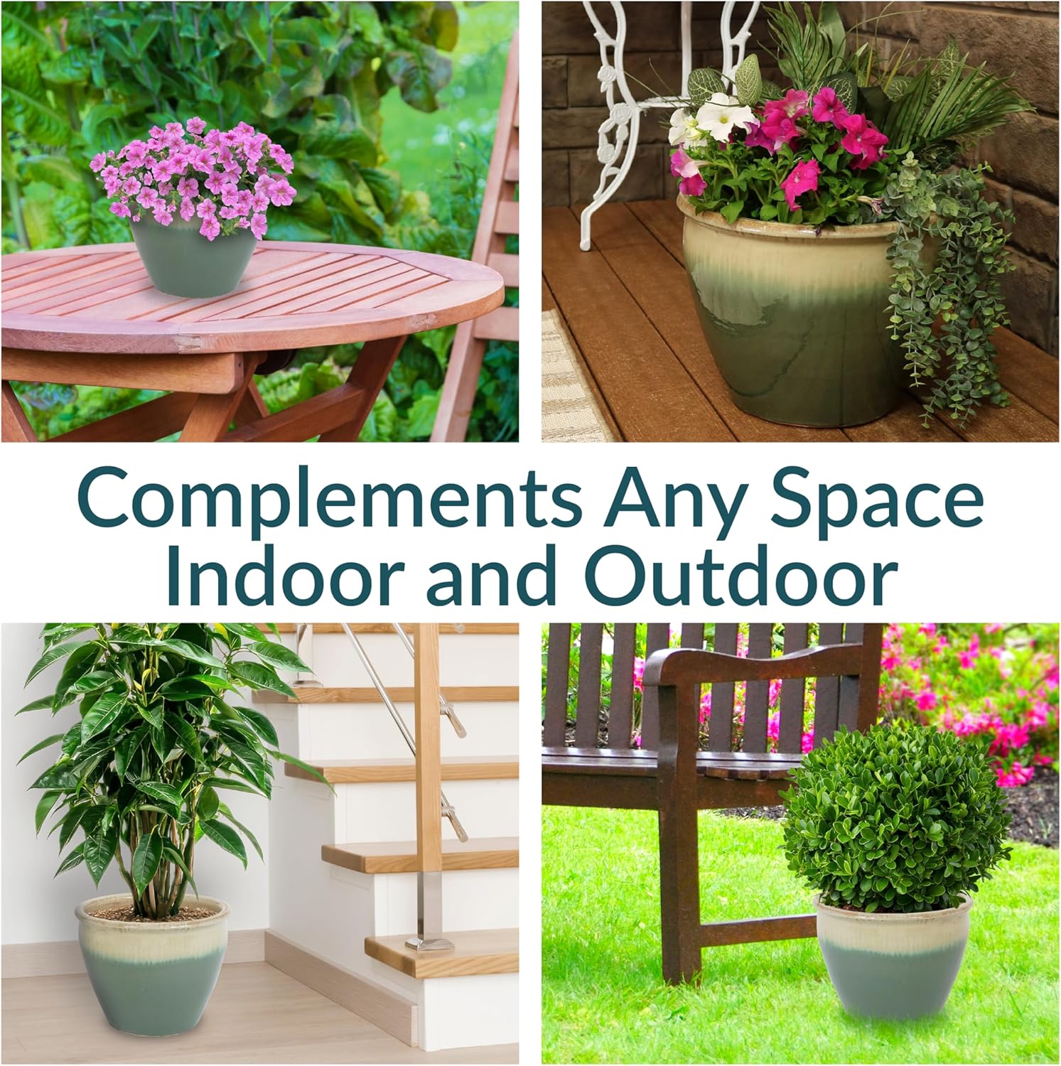 - DESIGNED FOR BEAUTY AND DURABILITY: This outdoor plant pot is crafted with a rich, hand-painted glazed finish that is kiln-fired for a classic, shining appearance. Subtle variations in color highlight the artisanal glazing process, making each piece truly unique. The durable ceramic construction offers natural UV and frost resistance, while its heavy weight adds stability to outdoor arrangements, keeping the planter upright in windy conditions.