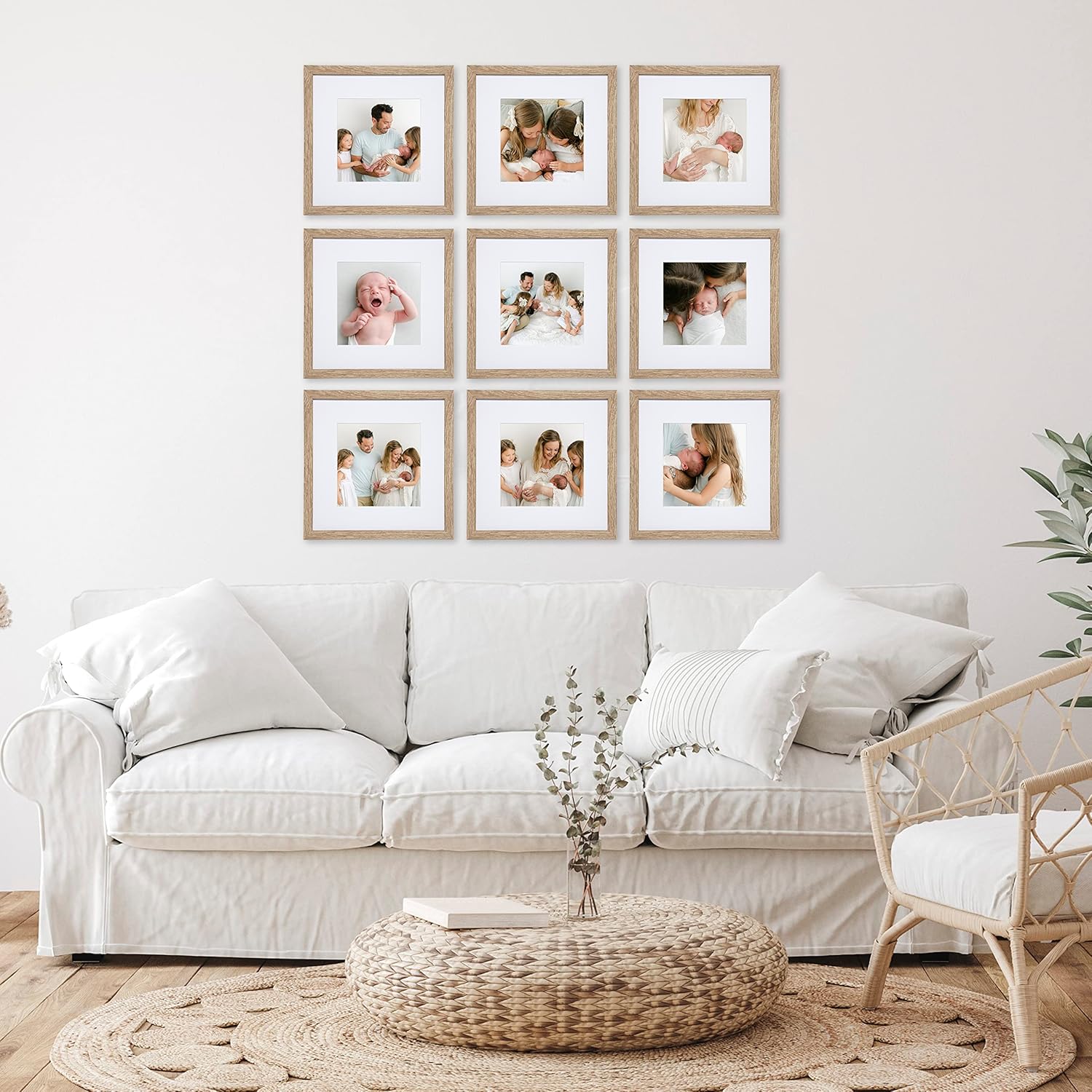 Sheffield Home 9 Piece Gallery Wall Frame Set, 12x12 in. Matted to 8x8 in. (Light Natural)