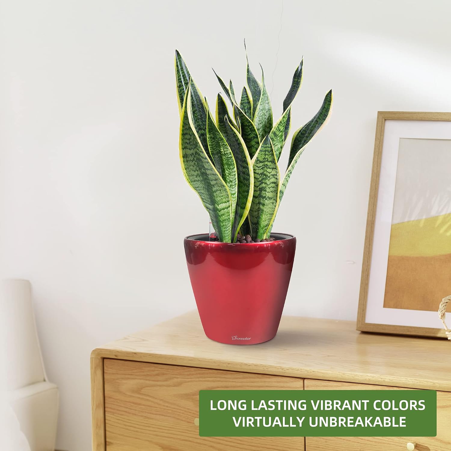 - SELF WATERING & NO MORE ROOT ROT - The smart unique sub-irrigation system is one of the most appealing aspects among all Dexceder planters. The easy-to-use separated integrated water reservoir or catcher- keeps your soil well aerated and automatic supplies plants with the right amount of ongoing moist air & nutrition for optimal growth. The insert indicator shows you the exact time to water again. The full water supply period can single-handedly last over 3 weeks based on different live plants