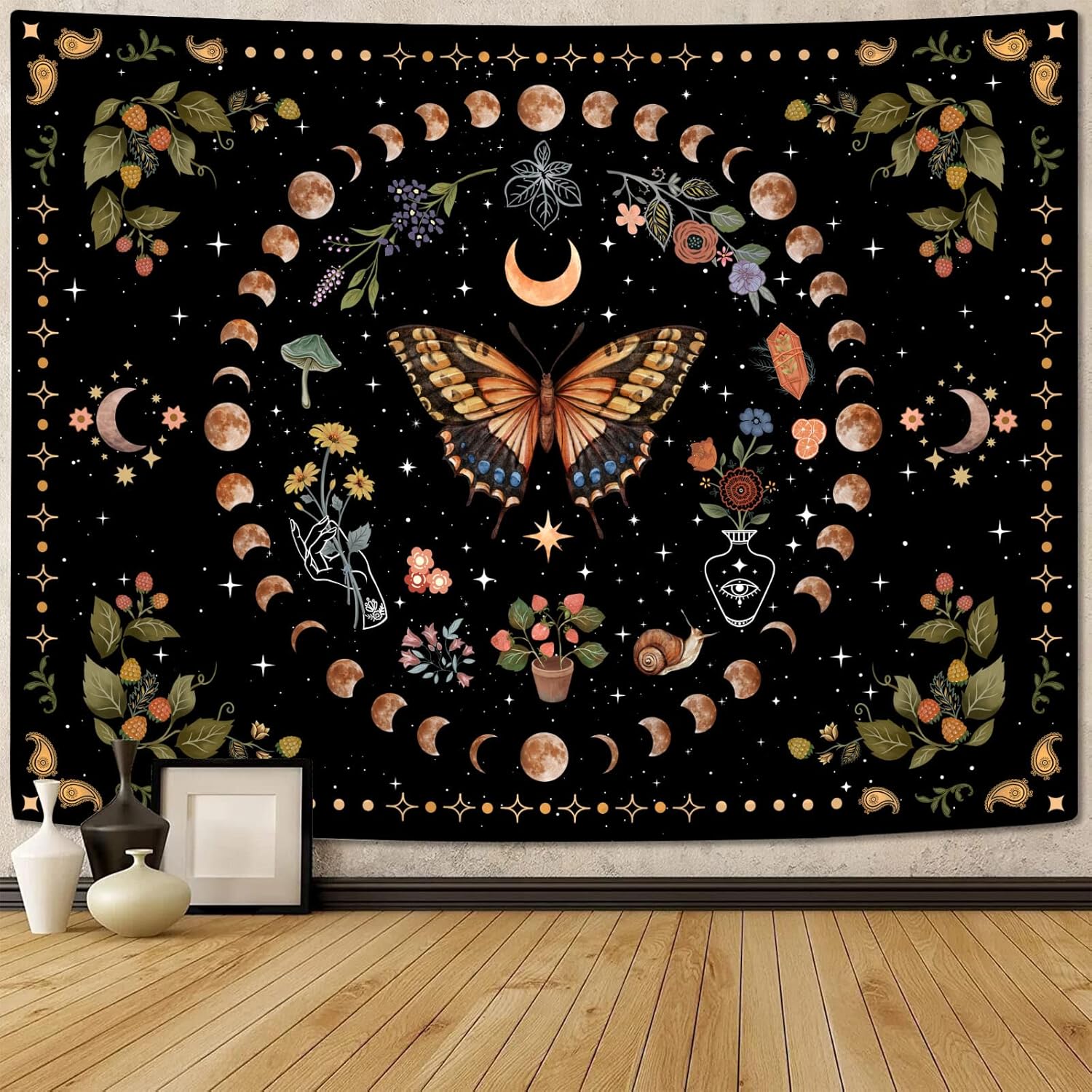 - 🎄【Service】: If you have any problem with thebutterfly moon flower tapestry, please customer service immediately, we will solve it for you. These aesthetic tapestries have three sizes, 48'' wide × 36'' high, 60'' wide × 44'' high, 80'' wide × 60'' high.