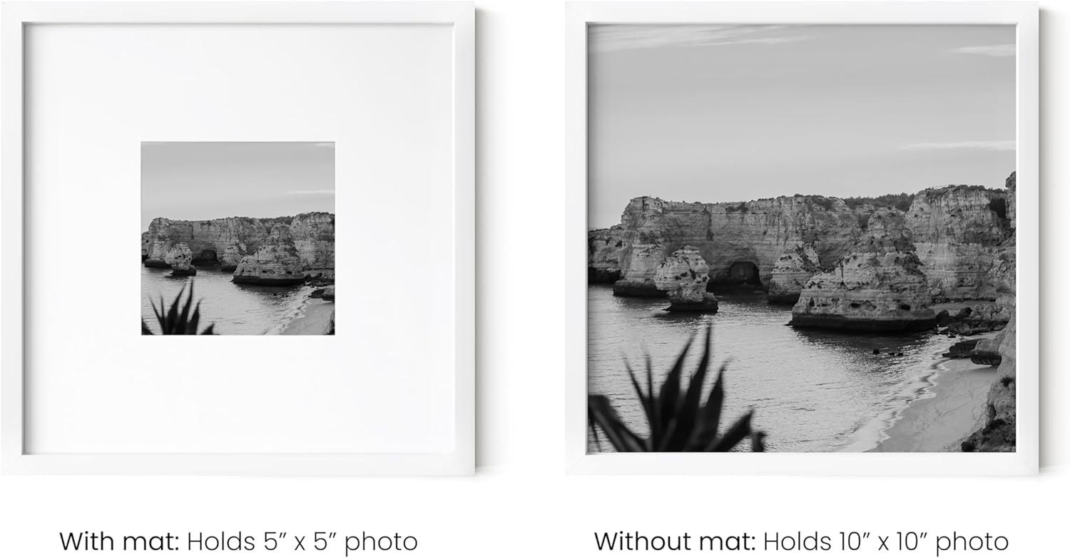- 10x10 SQUARE PICTURE FRAME: Our 10x10 white frame is meticulously constructed to increase its timelessness and durability. The slim profile of the 10x10 picture frame effortlessly blends into any interior decor, adding a contemporary touch. The clean lines and sleek design make the 10x10 frame a great choice for those seeking a stylish, understated display solution.