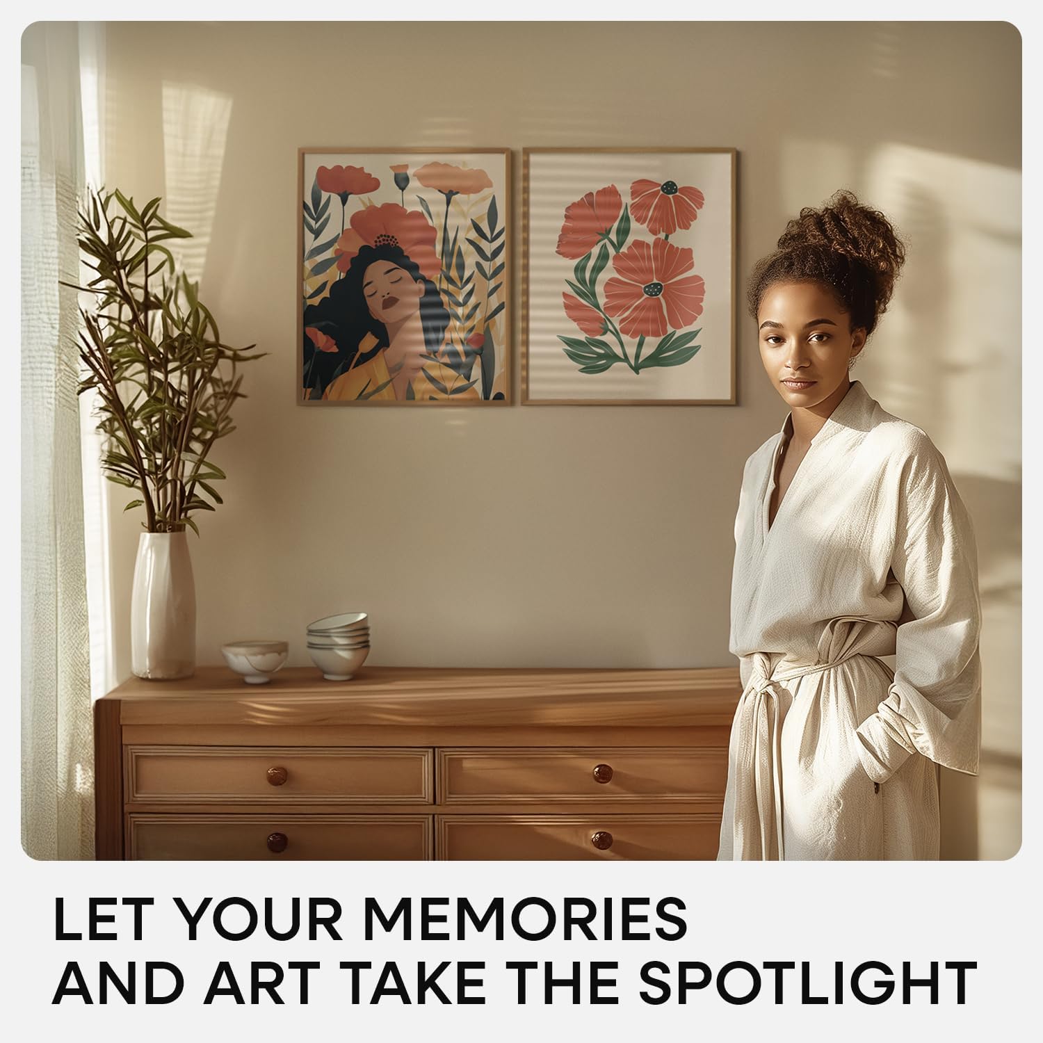 - WARM BRONZE. UNDERSTATED CHARM. Subtle and inviting, the bronze finish has a matte texture that softens light. Ideal for warm-toned photography, botanical prints, and natural materials.
