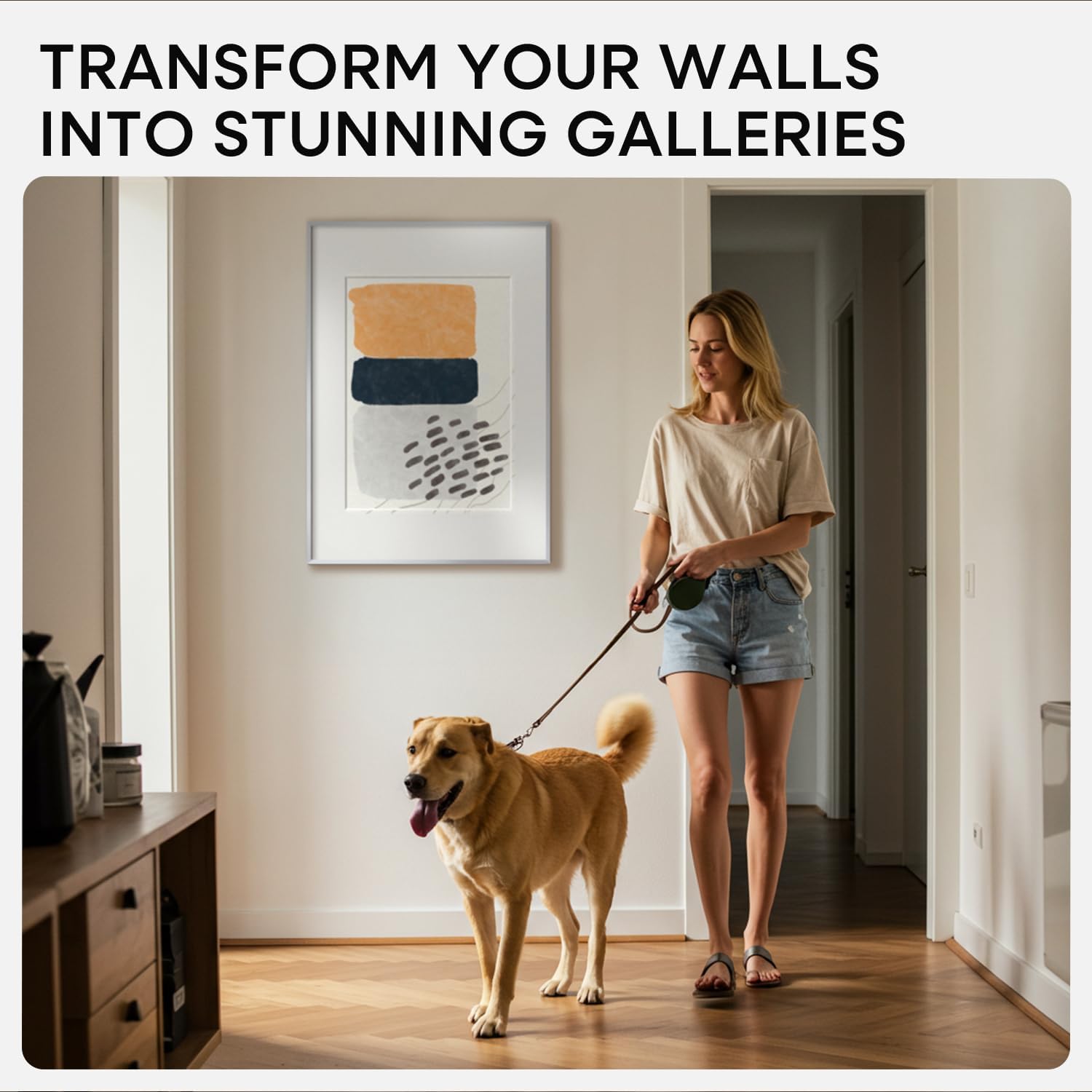 Homeforia A1 Poster Frame Silver, High End Metal A1 Large Picture Frame Silver with Mat A2 for Photo, 23.4x33.1 Frames Matted to 16.5x23.4 Print, 23.4 by 33.1 Frame, Tempered Glass, Wall Kit, Set of 1