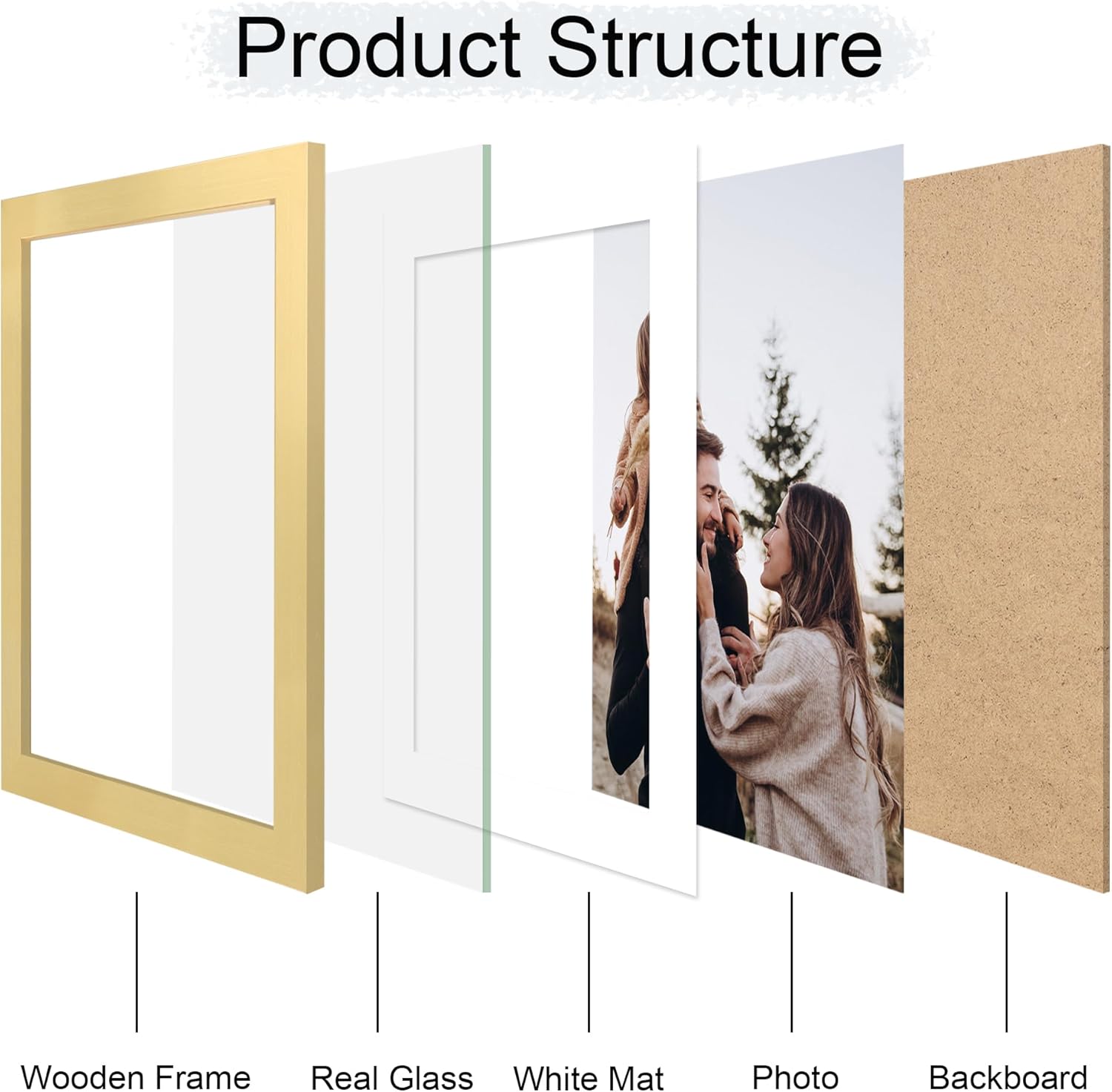 10x14 Picture Frame Set of 4, 10 x 14 Wood Photo Frames with Mat for 8x12 or 30x40cm Diamond Painting Art, Wooden Frame with Real Glass Cover for Wall and Tabletop Display,Gold