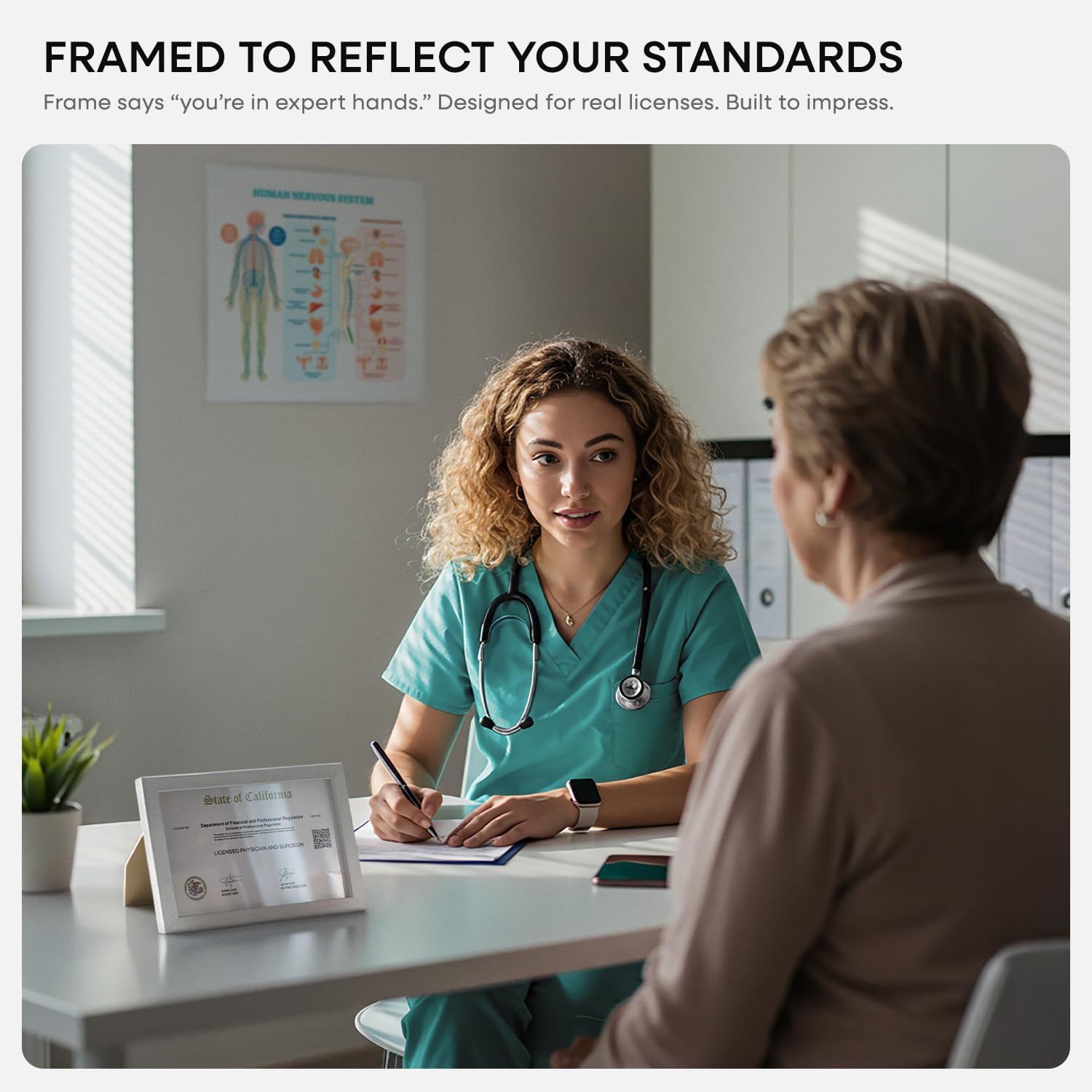 Homeforia 5.5x8.5 Business License Frame White, High End Oak 5.5 x 8.5 Wood Certificate Frames, 5.5by8.5 Document Frames for Wall or Tabletop, Wooden Picture Frames, Tempered Glass, Wall Kit, Set of 1