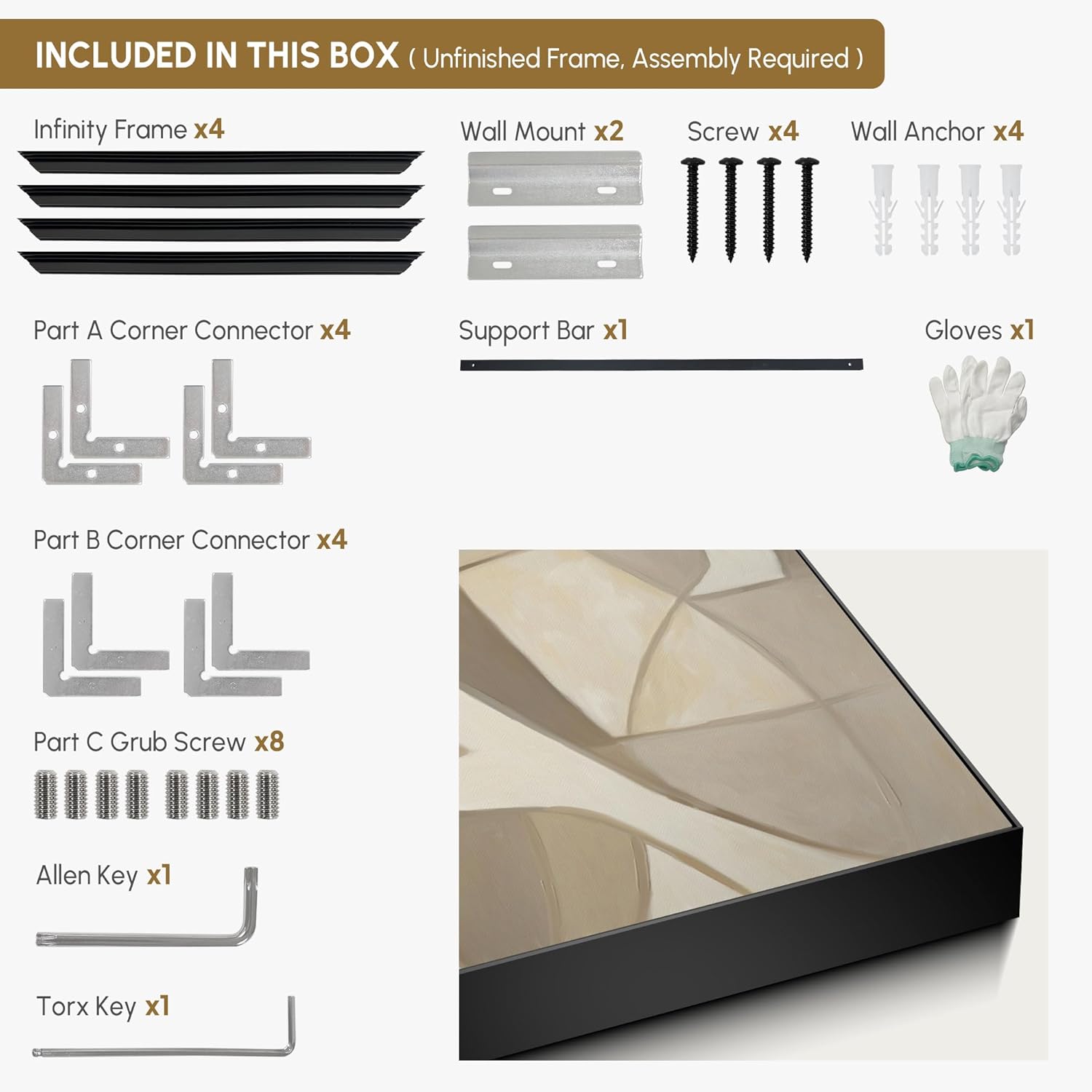 - Assembly Required: The artwork comes with the frame components unassembled. Don’t worry — setup is straightforward and tool-friendly. For best results and accurate alignment, we recommend two people to ensure a smooth assembly and a stable, secure wall mount.