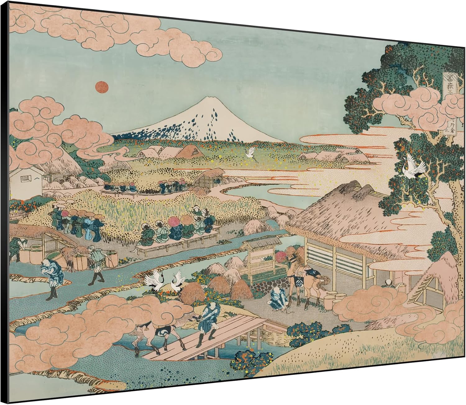 SIGNWIN 46"x60" Extra Large Framed Wall Art Japanese Ukiyo-e Landscape, Timeless Mt. Fuji Scene for Zen-Inspired or Asian-Style Interiors for Home Living Room Bedroom Decor (Frame Assembly Required)