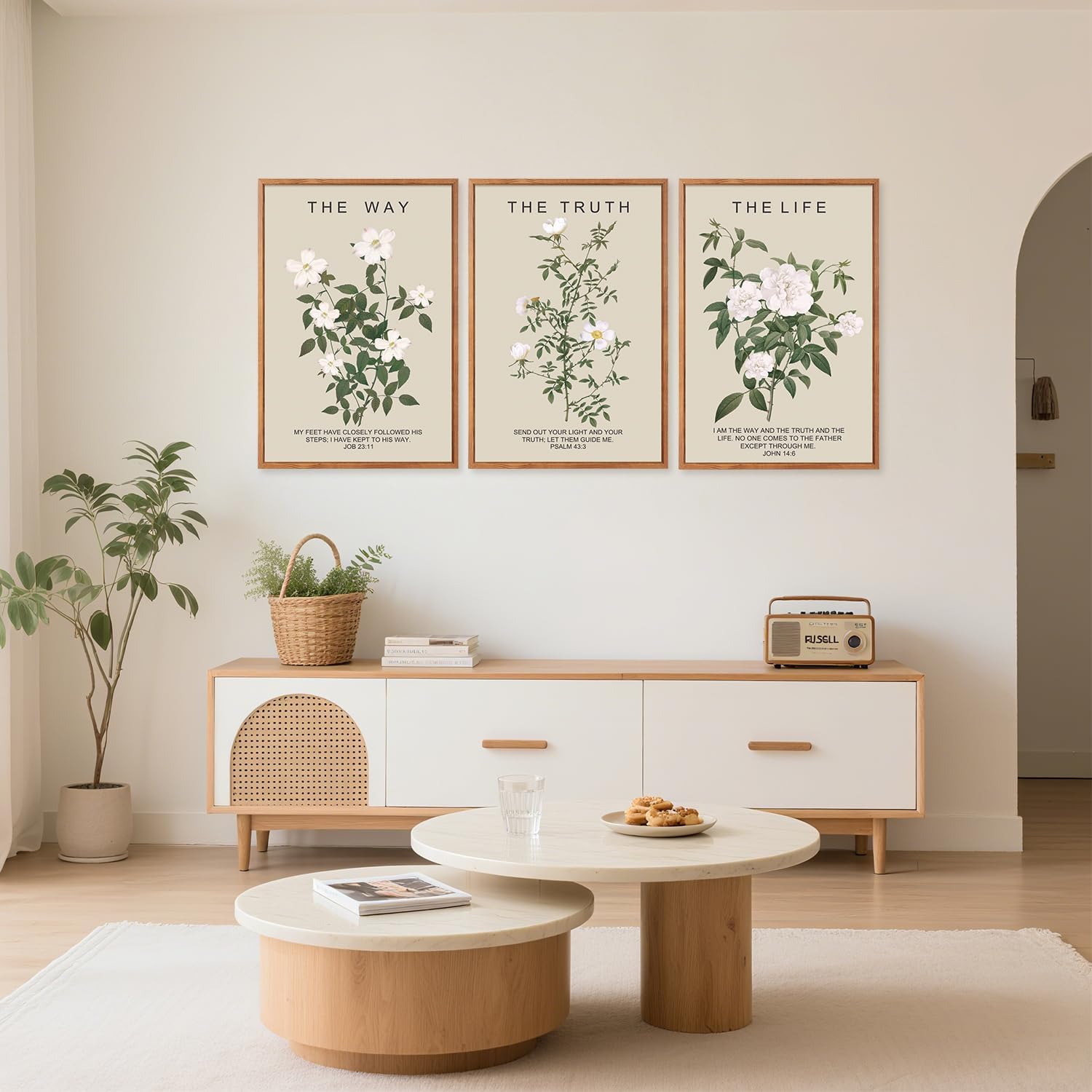 - The Way The Truth The Life Wall Art-- Aurlan christian jesus wall art framed is unified, featuring a simple and elegant design complemented by fresh botanical patterns and classic religious quotations, conveying a serene and sacred atmosphere.