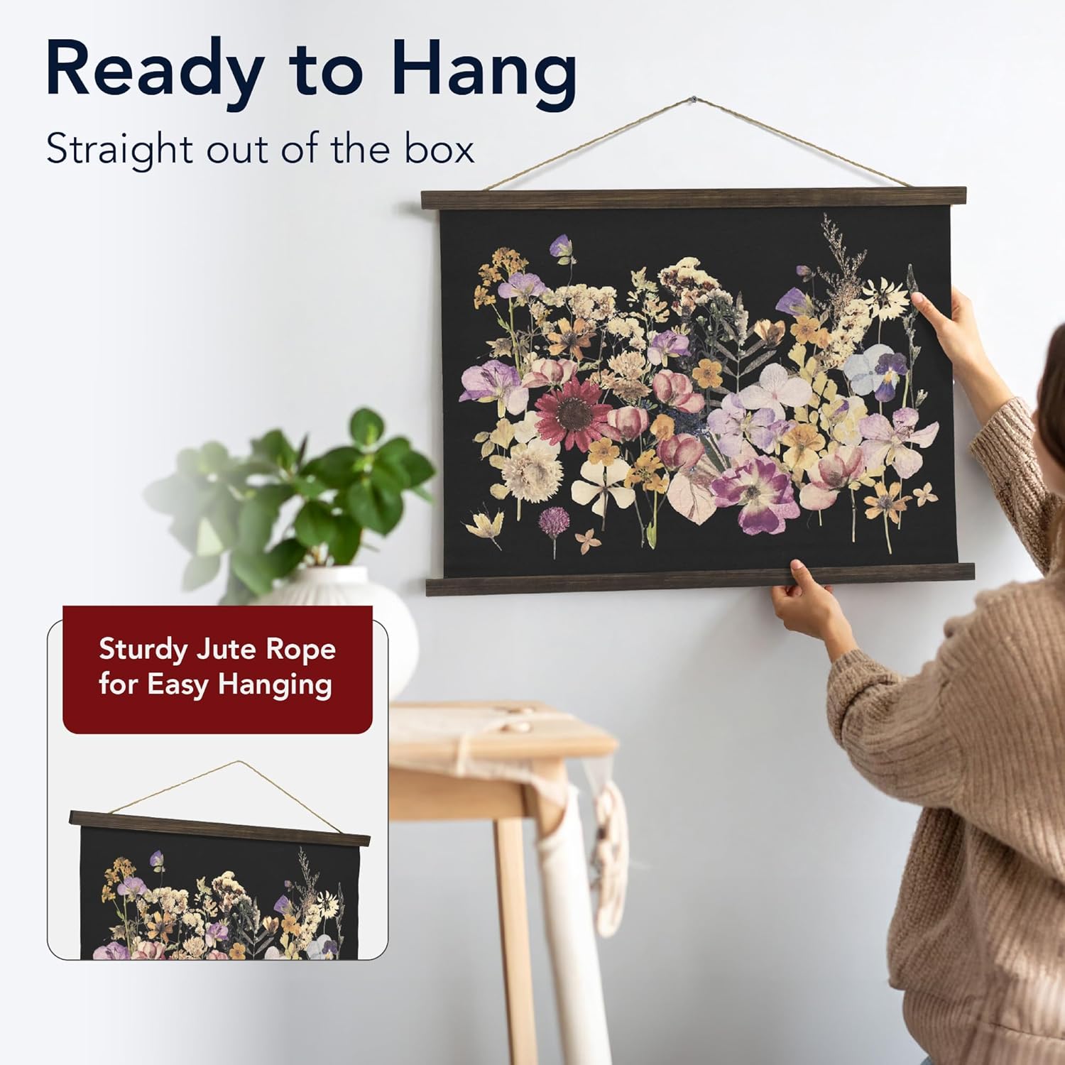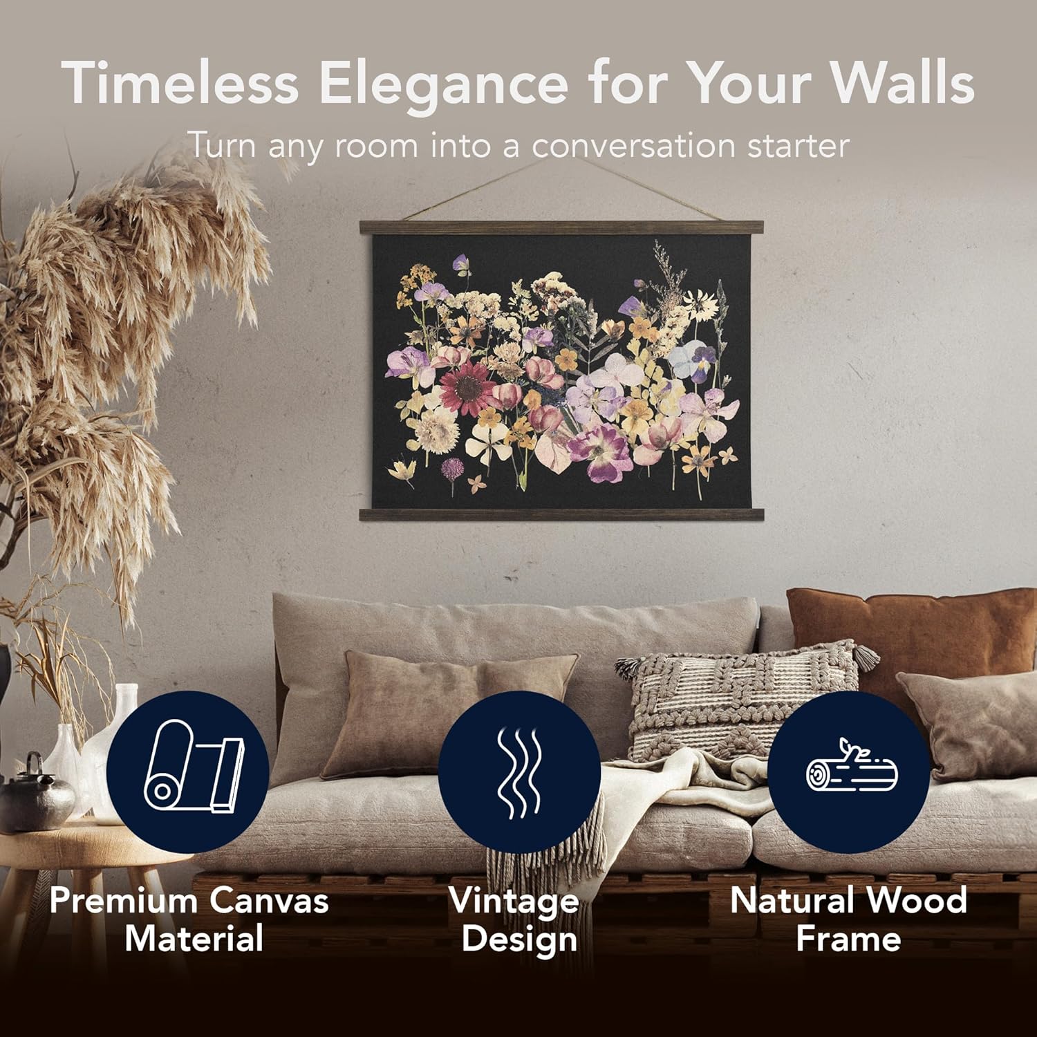 American Art Decor Framed Dried Flowers Tapestry Wall Art - Botanical Print with Blue, Yellow & Pink Blooms